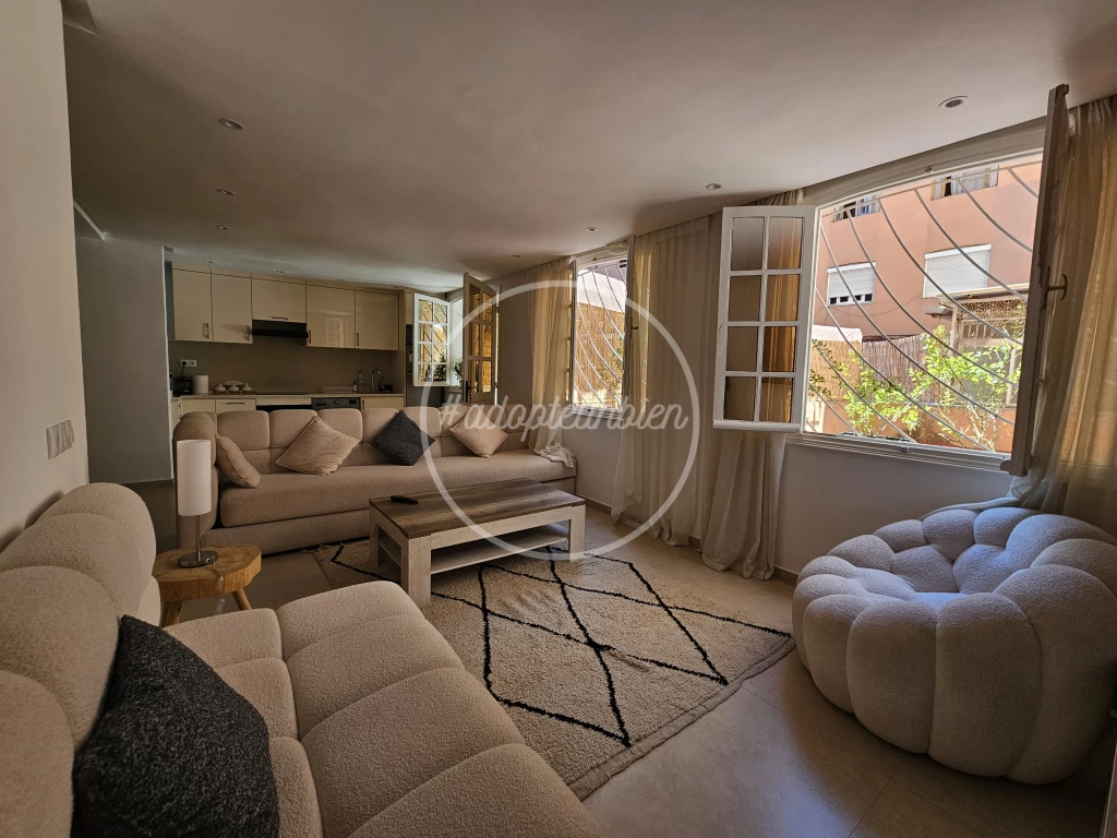 Au cœur de Guéliz, dans un environnement calme et privilégié, découvrez ce superbe appartement de prestige, entièrement refait à neuf et vendu meublé, offrant des prestations haut de gamme.